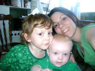 After a crazy week two weeks ago, last week and this week (yay, Spring Break!) are in slow mode. There wasn't much crafting involving London, just some decor stuff for their room and our house. There was, however, a whole lot of playing outside! Lance finished the wooden swing set last week, and everyday is spent playing on it. It's times like this that need the little things here and there to make each day special. We've had picnics outside, long wagon rides and picked every dandelion in sight. We had some Bruster's ice cream one evening and ended up laying a blanket down in the back of my SUV to have picnic and block the wind. On St. Patrick's Day, we put on our green and had a festive dinner with grilled chicken (I couldn't think of any green entrees?) brocolli, rice (there was a lot of green seasoning), and then for dessert, we had kiwi, green apples, and green grapes with fruit dip. (I'll confess here that the dip was marshmellow cream mixed with whipped cream with a tiny bit of green food coloring.)