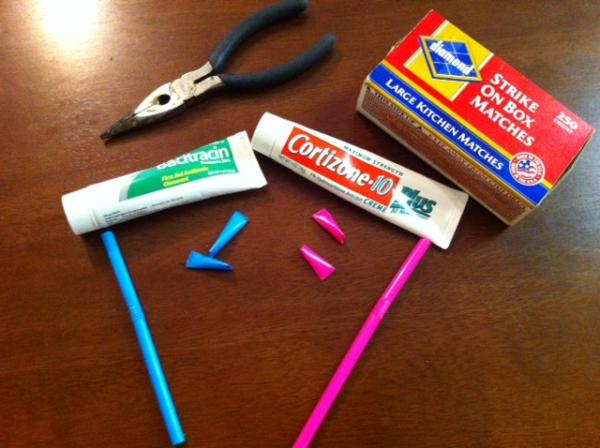 Little Hands Prep for Summer Bug Bites and Boo-Boos Hope everyone had a great Memorial Day! It actually surprised me, or I would have posted some fun activities with last week's post! We ended up spending yesterday with just our little family with the rest of our family, including the veteran of the family, out of town for the day. I attempted to get my children to eat shrimp with a spontaneous Under the Sea themed dinner. They loved it, but didn't eat their shrimp. Oh well, maybe next time. Tis the season of bug bites and boo-boo's, isn't it? We went to the zoo Friday, and I think London fell down at least 4 times. Sometimes, it's not always possible to carry the whole first aid kit with you, but thanks to pinterest, I've found a way to try! I made some small tubes of hydrocortisone creme and antibiotic ointment.