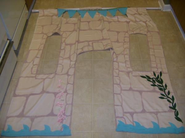 Little Hands: Make a Castle for the Kiddos Remember the playhouse made from the curtain? Well, after many requests for a castle (from the princess living in my home), I came across an old tablecloth in my linen closet that I knew would be perfect! I cut it down to fit and cut the castle stones on the top. The material frayed horribly, so I had to hem it around the edges, windows, and door. I sewed everything because London's new favorite hobby is to "help" sew by holding my hands, but all the hemming and everything could have been done with a hot glue gun. On the top area, I made folded it over to make pockets for the shower rod to go through, then added castle blocks with some paint. (Castles are surprisingly easy to paint and you can google tons of videos and tutorials.) We made a banner for the top, water on the bottom for the moat, then added flowers and ivy growing up the sides out of old clothes and things we had around the house. For the final touch, I made a felt coat of arms. I copied the real Patterson coat of arms, but attached it with velcro so the girls can make their own fun ones later. This is such a fun and easy idea. I'd love to make a store front and/or school later so they can have several options to choose from. So far, the castle has stayed in the doorway to the hallway from the living room this week, but as long as she's entertained and not telling her baby sister no for chewing on all her toys. Hope everyone had a great Father's Day! We celebrated by making cupcakes and attempting to ice them to look like a grill, but failed. Luckily, they were chocolate with chocolate icing, so, no fail after all :) Today's the first official day of Summer, by the way! We're eating fruit, playing in the pool, and catching lightening bugs! Are you celebrating it?