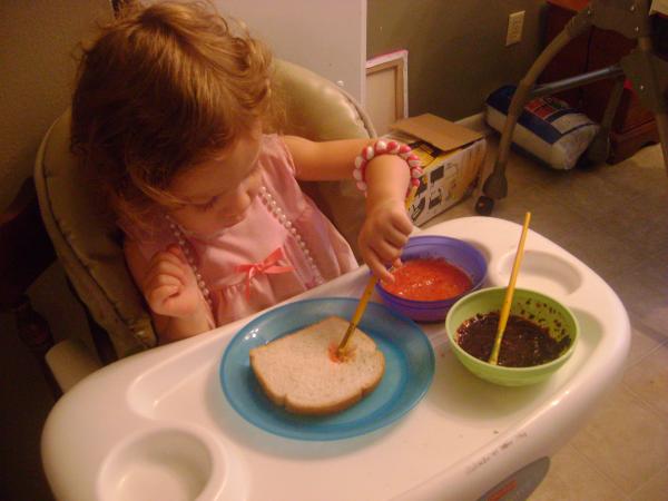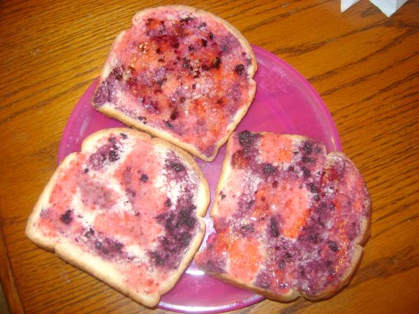 Little Hands Paint Patriotic Toast Hello all, I hope you enjoyed your Labor Day! This weather is beyond amazing. We spent the entire day just sitting outside, but we're all paying for it today with puffy eyes and other lovely symptoms of allergies. Totally worth it. I was looking for something fun to do, particularly something that could use red, white and blue, since it was a federal holiday. I came across an idea online of "painting" bread with milk dyed with food coloring and then toasting. I really liked the idea, but we really avoid food coloring as much as possible, especially for just because things. Yes, I'm THAT mom. So...I kept thinking how much I liked the idea, but not the food coloring..or milk on bread? What? Yuck. Then, I had a GREAT idea! A couple of strawberries pureed, then several blueberries pureed, a paint brush or two, and TA DA! Yummy bread "paint." London loved it, and she could paint the whole thing without my concerned looks. I baked them for a few minutes face up, and then flipped them for a couple more minutes so that any part still soggy or wet from the fruit would bake. Then, I drizzled the toast with a tiny bit of honey and served. The girls loved the flavored toast! It really was so good, and fun! It took less than five minutes to prepare and another five for her to paint. Having a sleepover soon? Or a Saturday? Pull out the fruit and bread, and you'll be the coolest parent ever! Also, remember the post about frozen muffin batter in the ice cubes that was ingenious if I say so myself? Well, try cookie dough! I keep cookie dough to bake whenever needed, since we also avoid as many preservatives as possible (don't judge me). But it can all be thrown into a Ziploc bag, then baked perfectly whenever needed!I LOVE my freezer..why don't I have a deep freeze? Enjoy the beautiful weather and painted toast!