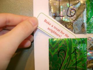 Little Hands Celebrate Christmas Every Day It's not too late for an Advent calendar, you know. Sometimes, I have ideas of things I'd like to do, but I think it's too late if the time has already started and miss out. All that to say, we made an Advent calendar and it's quickly becoming one of my favorite traditions. I made mine about 2 a.m. on Dec. 1, ahem...out of a gift wrapping box, wrapping paper and hot glue. I cut out a small green Christmas tree out of construction paper and glued it to a popsicle stick to move each day that would give the girls a visual. My favorite part of the calendar, however, are the pieces of paper inside each pocket. I made small rectangle boxes on Microsoft Word with a green outline, and with a red font, I typed up some Christmas time activities to do each day. It's fun to go each morning and move the Christmas tree, then pull out the activity.